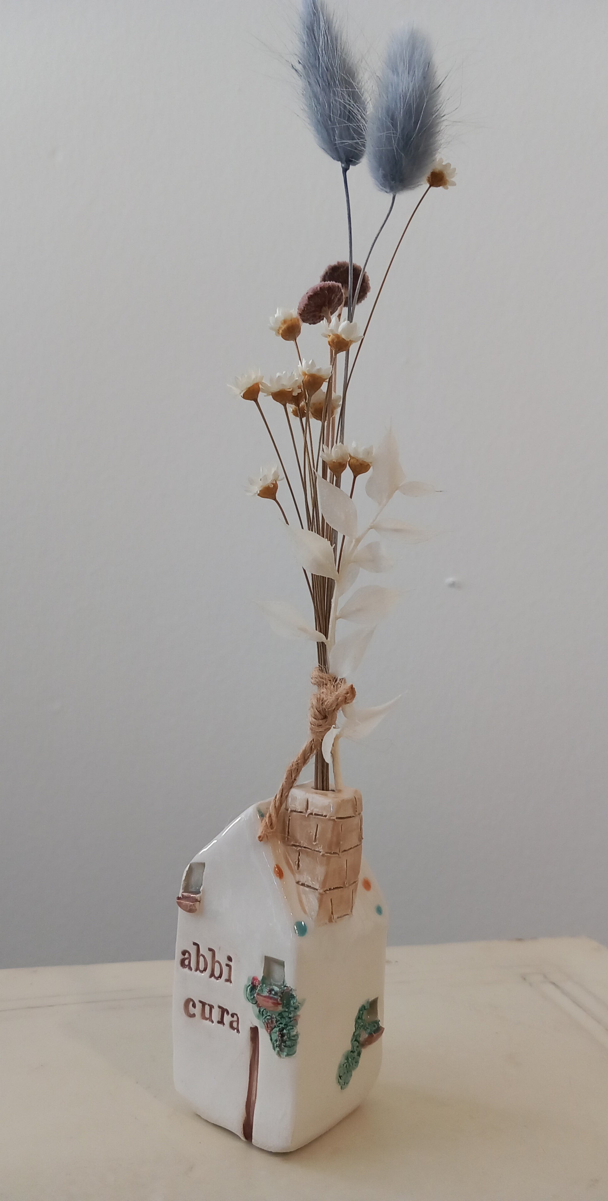 - La lavorazione della ceramica necessita di tempi molto lunghi, di amore e di pazienza: solo così ogni pezzo che prende forma dalle mie mani e che arriva nelle vostre case sarà irripetibile ed imperfettamente unico nella sua bellezza. Abbiatene cura.