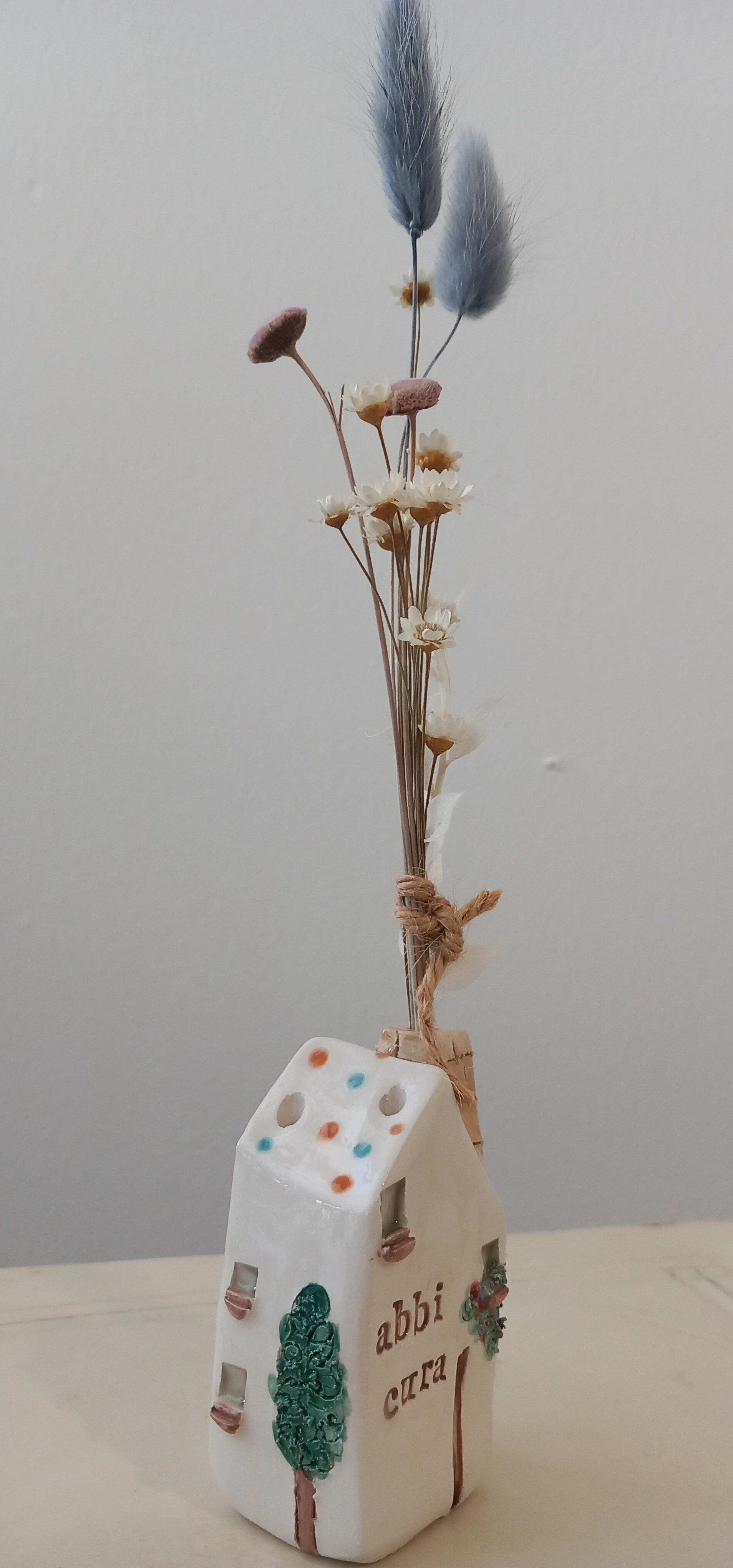 Sul tetto sono presenti 3 fori per poter inserire i fiori secchi che sono inclusi nel prezzo.