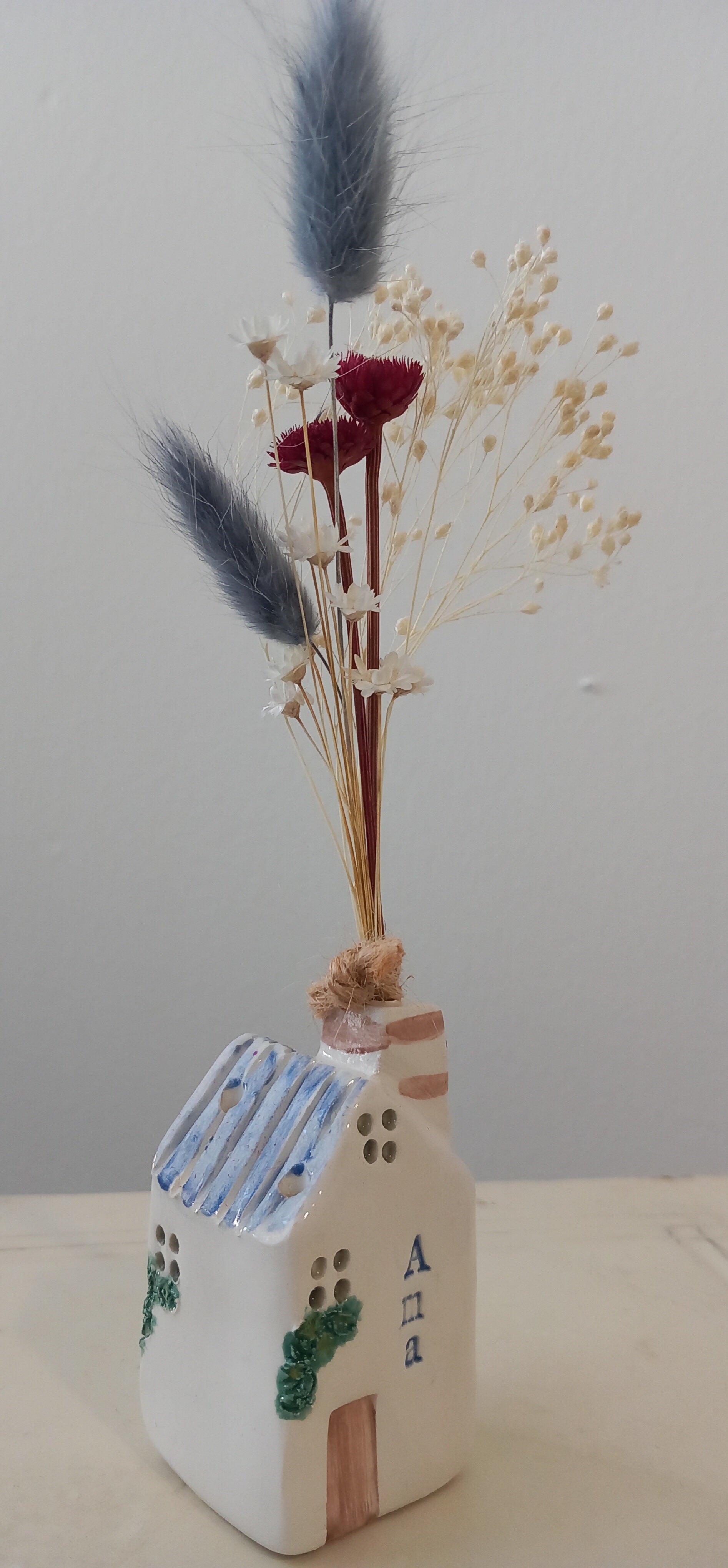 Sul tetto sono presenti 3 fori per poter inserire i fiori secchi che sono inclusi nel prezzo.