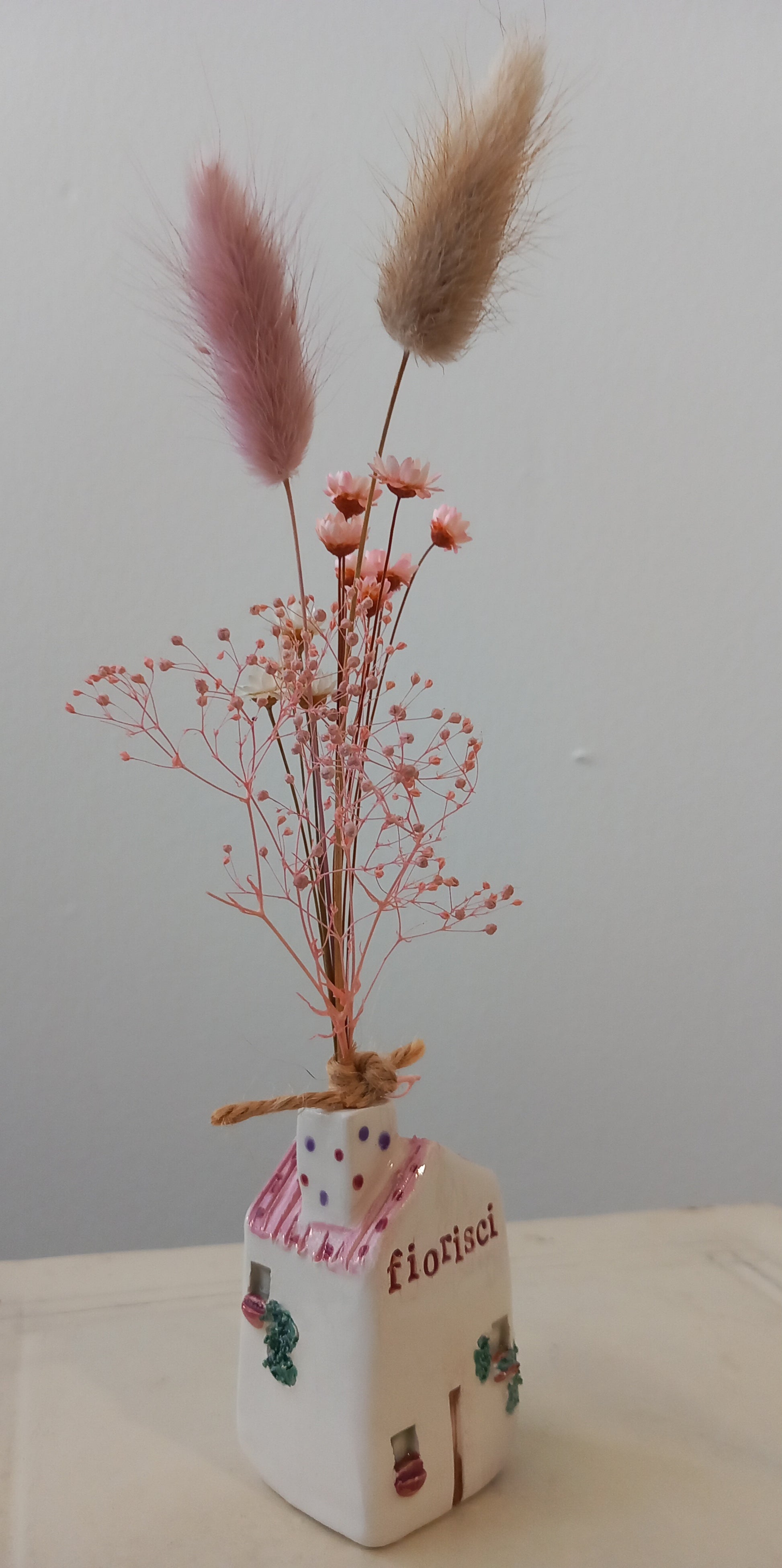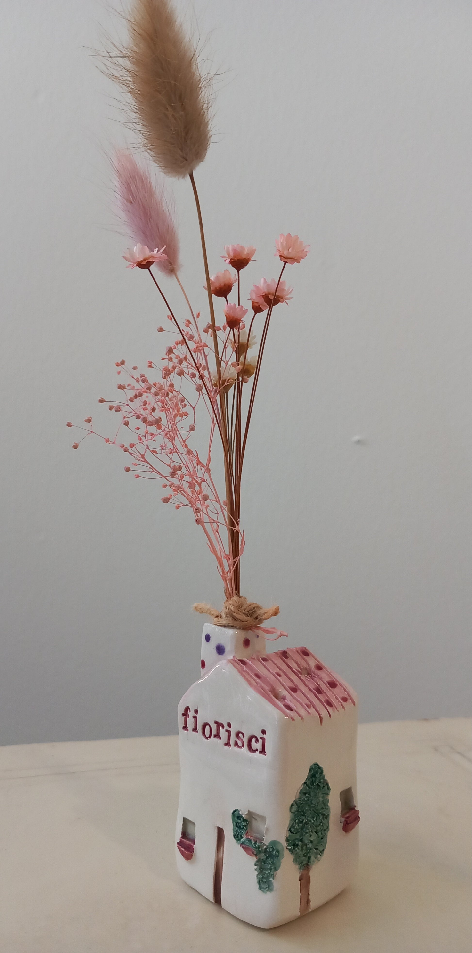 Sul tetto sono presenti 3 fori per poter inserire i fiori secchi che sono inclusi nel prezzo.