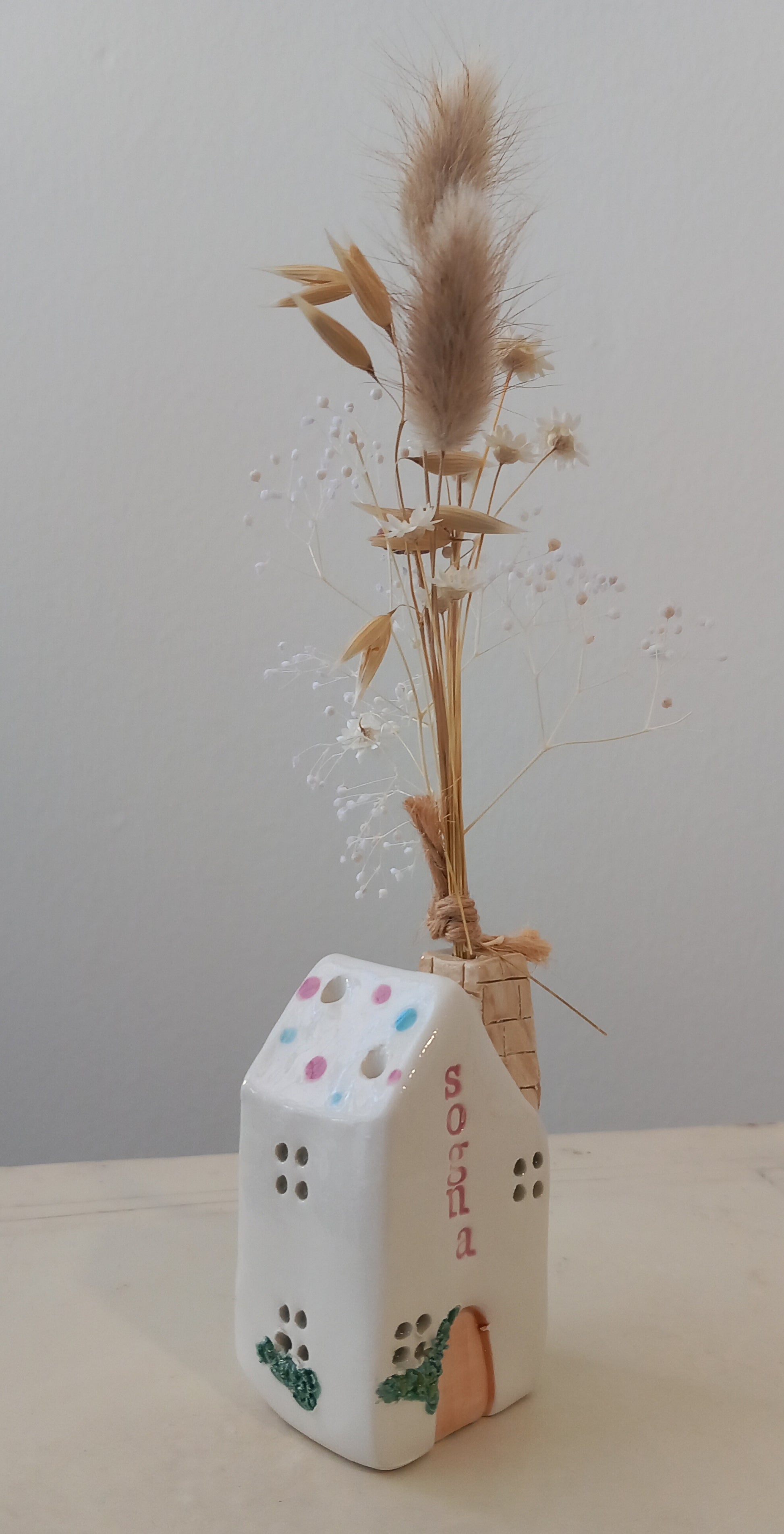 Sul tetto sono presenti 3 fori per poter inserire i fiori secchi che sono inclusi nel prezzo.