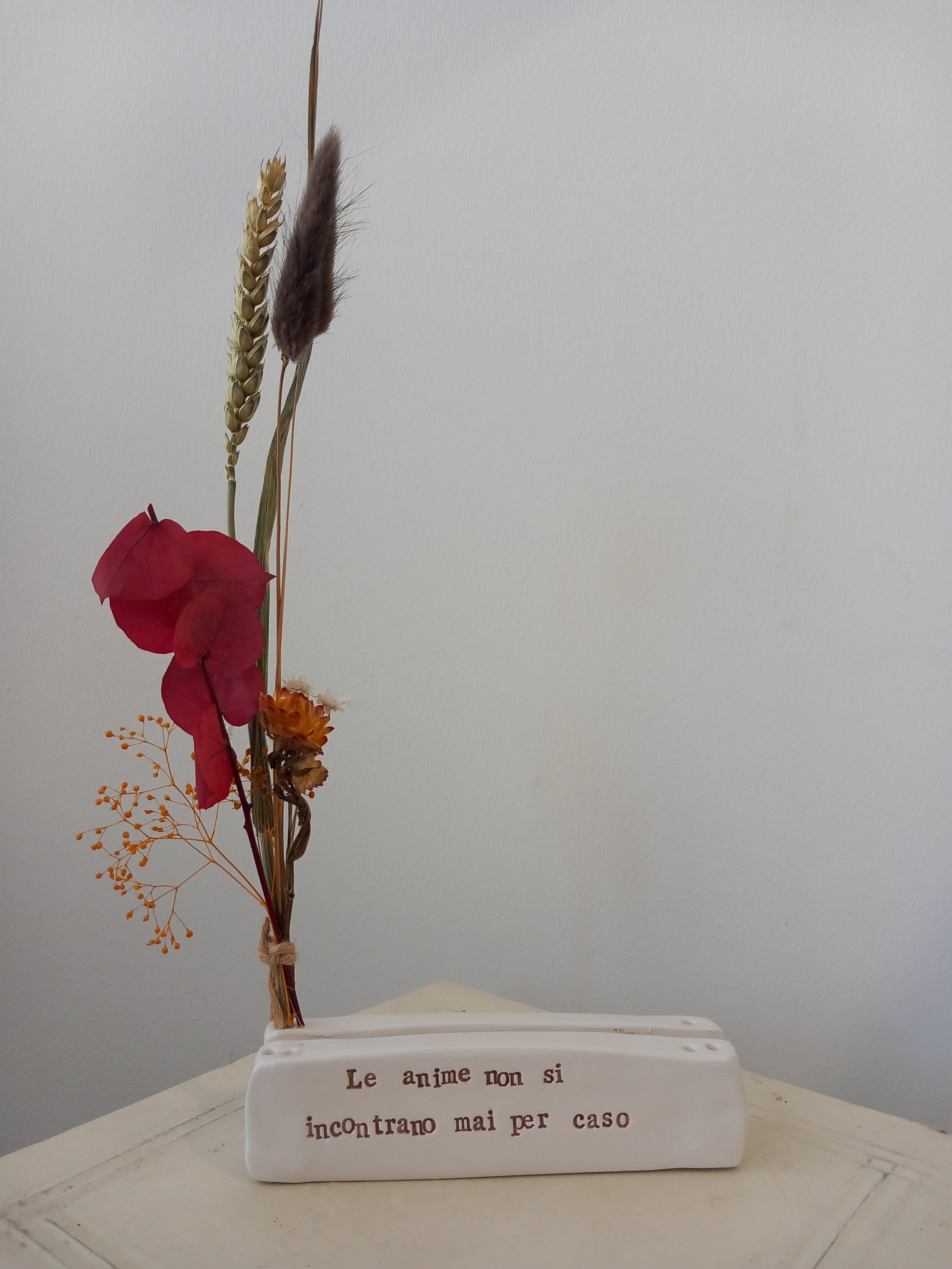 - La lavorazione della ceramica necessita di tempi molto lunghi, di amore e di pazienza: solo così ogni pezzo che prende forma dalle mie mani e che arriva nelle vostre case sarà irripetibile ed imperfettamente unico nella sua bellezza. Abbiatene cura.