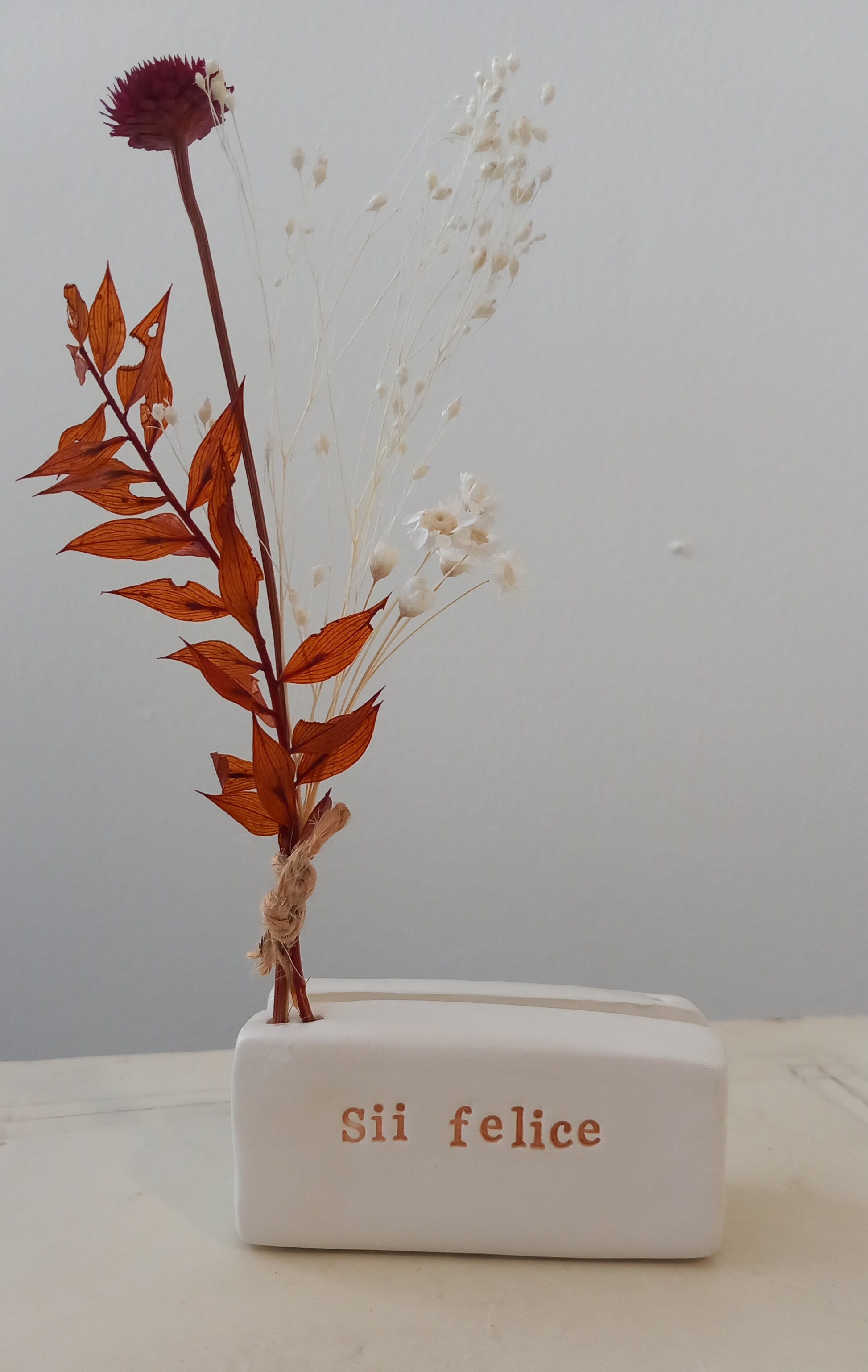 - La lavorazione della ceramica necessita di tempi molto lunghi, di amore e di pazienza: solo così ogni pezzo che prende forma dalle mie mani e che arriva nelle vostre case sarà irripetibile ed imperfettamente unico nella sua bellezza. Abbiatene cura.